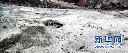 這張巴基斯坦三軍新聞局提供的4月8日拍攝的照片顯示巴基斯坦軍人在巴基斯坦北部錫亞琴冰川地區雪崩事故現場搜救。新華社發