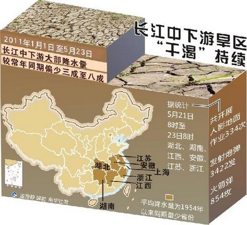 在湖北,全省一度有66個縣市的雨量為近60年來最少,受旱農田面積達到1800萬畝,約占耕地三成,有78萬人飲水困難。最近一輪降水過后,全省重旱地區有所減少,旱情有所緩解,但仍有50個縣市降雨量為歷史同期最少,降水對中稻泡田、插秧增水作用有限。