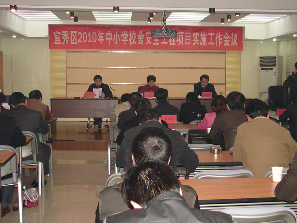 4月13日,宜秀區(qū)召開2010年中小學(xué)校舍安全工程項(xiàng)目實(shí)施工作會議,總結(jié)2009年度全區(qū)校舍安全工程的實(shí)施情況,部署安排2010年校舍安全工作。區(qū)政府副區(qū)長施勤出席會議并講話.