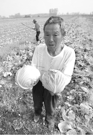 湖北省嘉魚縣潘家灣鎮肖家州村的菜農王開虎家里種了22畝包菜,成本近2萬元,賠本賣出了1000元后就再也沒人要了,為了趕種下季蔬菜,只好將包菜全部鋤掉。