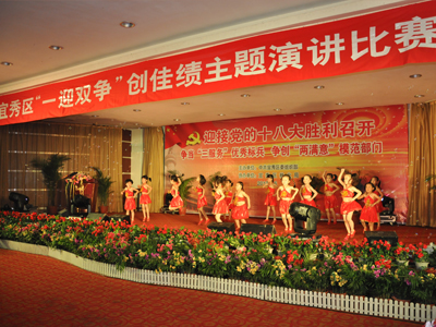 為深入推進“一迎雙爭”主題實踐活動,引導全區組織人事干部和黨務工作者自覺保持黨的純潔性,講黨性、重品行、作表率,以飽滿的政治熱情、昂揚的精神狀態、優異的工作成績,迎接黨的十八大勝利召開。7月6日下午,宜秀區“一迎雙爭”創佳績主題演講比賽在安慶大酒店報告廳隆重舉行。市委組織部常務副部長桂青,區領導夏吉苗、李順琪、汪于飛、劉華、葉林霞、昝建亮、吳勝橋、程賢華、方國勝、高青琳、李亞波、何平、胡駿觀看了比賽,并對獲獎選手頒獎。