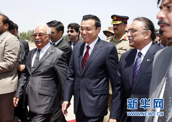 5月22日,中國國務院總理李克強乘專機抵達伊斯蘭堡,開始對巴基斯坦進行正式訪問。巴基斯坦總統扎爾達里、總理霍索到機場迎接。新華社記者馬占成 攝