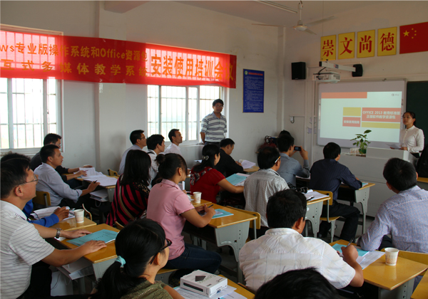 本次培訓內容還包括多媒體遠程教學設備的使用、保養維護、簡單故障維修;OFFICE2013辦公軟件的注冊等。培訓歷時1天,中午時間不休息,考勤嚴格,現場檢測,要求參訓教師和管理人員必須人人過關。培訓師認真講解,還不適的與管理員互動交流、深入探討,培訓氣氛活躍,最后參訓教師和管理人員均圓滿完成培訓及考核任務。