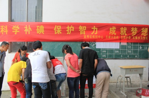 5月15日,是我國第20個“防治碘缺乏病日”。為了普及防治碘缺乏病知識,提高廣大學生自覺食用碘鹽的意識,教育和組織廣大師生自覺地參與碘缺乏病防治工作,宜秀區疾控中心、五橫鄉政府聯合開展了 “科學補碘、保護智力、成就夢想”的主題宣傳活動。
