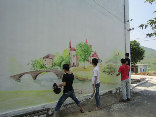5月27日—28日,五橫鄉(xiāng)楊亭村邀請安慶師范學(xué)院美術(shù)系的在校學(xué)生到張沖組、奮沖組美好鄉(xiāng)村建設(shè)點(diǎn)進(jìn)行墻體繪畫創(chuàng)作。學(xué)生們通過油畫、卡通畫、山水畫等多種繪畫形式,運(yùn)用通俗易懂、喜聞樂見的表達(dá)方式,描繪了美好鄉(xiāng)村建設(shè)的主要內(nèi)容。一幅幅色彩艷麗的畫卷和白墻紅瓦的建筑風(fēng)貌相互映襯,倒影在波光凌凌的當(dāng)家塘里,格外美麗。很多村民駐足欣賞,成為美好鄉(xiāng)村建設(shè)中一道靚麗的風(fēng)景線。