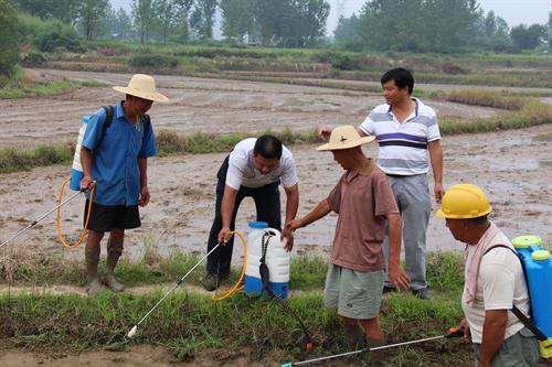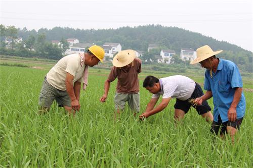 圖為該區農技站工作人員在黃梅村一家庭農場指導水稻病蟲害時情景。(王四清 方華 王龍)