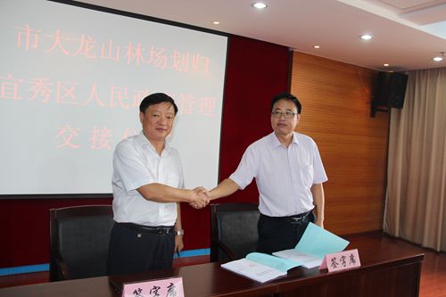 市大龍山林場劃歸宜秀區人民政府管理交接儀式舉行 陶方啟出席儀式并講話