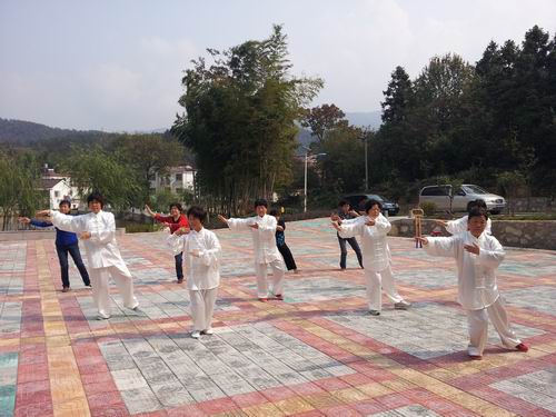 10月20日,市區20余位老人自發來到五橫鄉,她們先后游覽了五橫鄉的觀音寺、源普寺、“兩鄧”故居和美好鄉村示范點楊亭村。看著整潔的村莊、干凈的農家以及隨處可見的青山綠水、藍天白云,呼吸著有錢買不到的清新空氣,走走路,賞賞鄉間不知名的野花,徜徉在如詩如畫的田園風光之中,心情極好,令大家都不約而同的穿起裝備,在楊亭美好鄉村建設示范點奮沖廣場上,這群老人們打起了太極、舞動了扇子、跳起了健康的韻律。五橫鄉讓她們感覺到這里就是實實在在的原生態的美麗鄉村,處處非景,但也處處是景。(劉曉燕 潘飛)