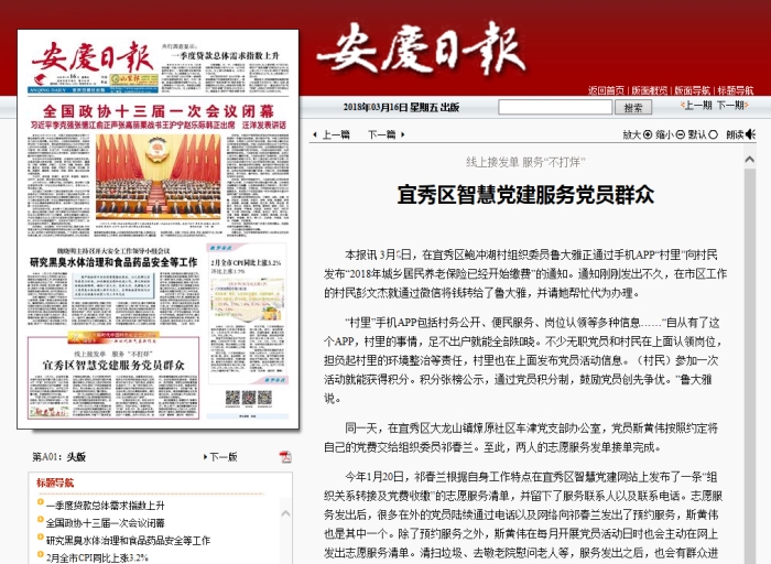 [安慶日報頭版] 宜秀區(qū)智慧黨建服務黨員群眾
