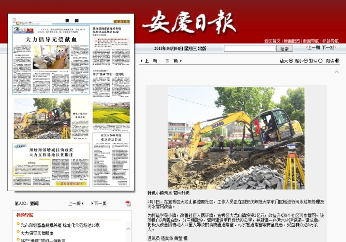 [安慶日報] 宜秀區:特色小鎮 污水管網升級
