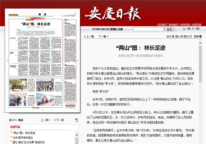 林長制是保護生態環境的終身追究制,真正做到了林有人管、責有人擔、做有成效。
