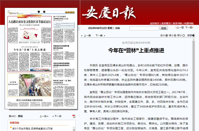 宜秀區(qū)“青山百化”專項治理是我市市級林長制四大示范工程之一。2017年7月,我市啟動實施林長制工作以來,堅持高位推動,各地各相關(guān)部門積極行動,主動作為,推行林長制向鄉(xiāng)鎮(zhèn)、村級延伸,全面建立市、縣、鄉(xiāng)、村四級林長制,全市已設(shè)立林長6034名、林長公示牌1628塊,建立了5400余名護林員隊伍,基本形成林有人管、事有人做、責(zé)有人擔(dān)的責(zé)任體系。