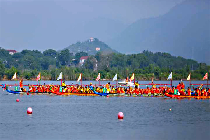 碧波蕩漾的石塘湖上,各支龍舟代表隊激烈角逐,進行著500米直道競速。鼓聲陣陣,水花激濺,一支支龍舟在緊張的鼓點和觀眾吶喊助威聲中,奮力劃水,你追我趕。湖岸邊,呼叫聲、喝彩聲此起彼落,熱鬧非凡;龍舟上,船手們拼盡全力,力求展現出最佳實力。石塘湖上百舸爭流,湖岸觀者如云,喧振水陸,萬眾歡騰。扣人心弦的龍舟競渡,把端午的節日氣氛推向了高潮。