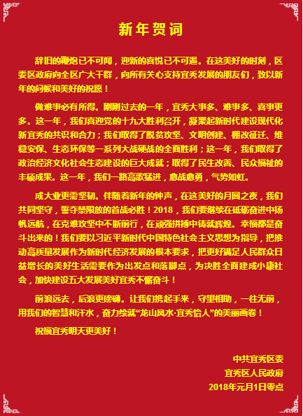 宜秀區委區政府2018新年賀詞