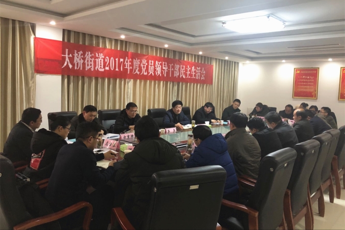 2月6日下午,大橋街道召開2017年度黨員領導干部民主生活會,區委書記婁雪松,區委辦、區監察委員會、區委組織部相關負責同志參會并全程指導,大橋街道黨政班子全體成員參加會議。