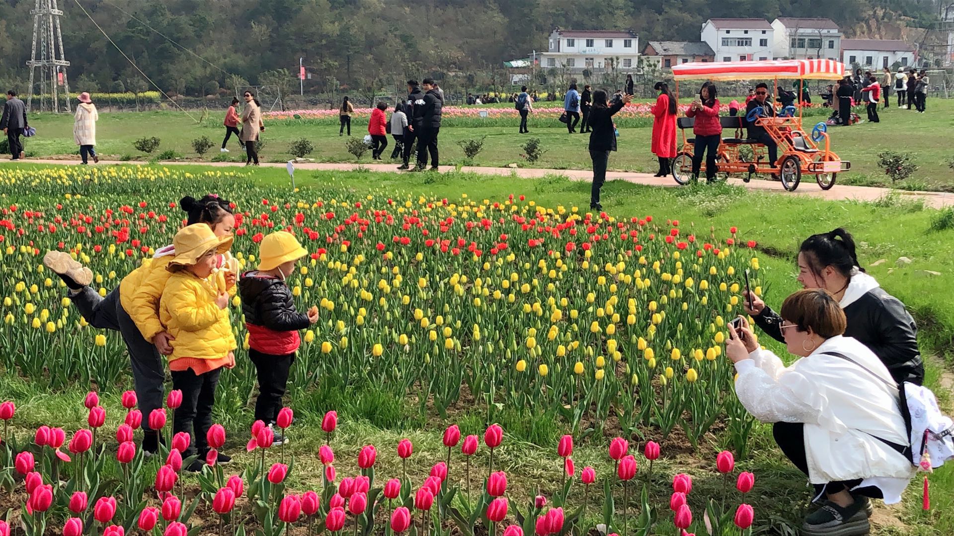 本次花展,郁金香種植開放面積有1000畝,主辦方引入八個系列56個品種的荷蘭郁金香近百萬株,花朵連成一片花海,嬌艷嫵媚,當天上午便吸引了前來賞花的游客一萬多人次。據(jù)了解,郁金香的花期可以長達一個月,本次花展從今天開幕一直持續(xù)到4月中下旬,除了賞花,這里還能看到合唱快閃、書畫展、民俗文化展、黃梅戲演出等精彩節(jié)目。