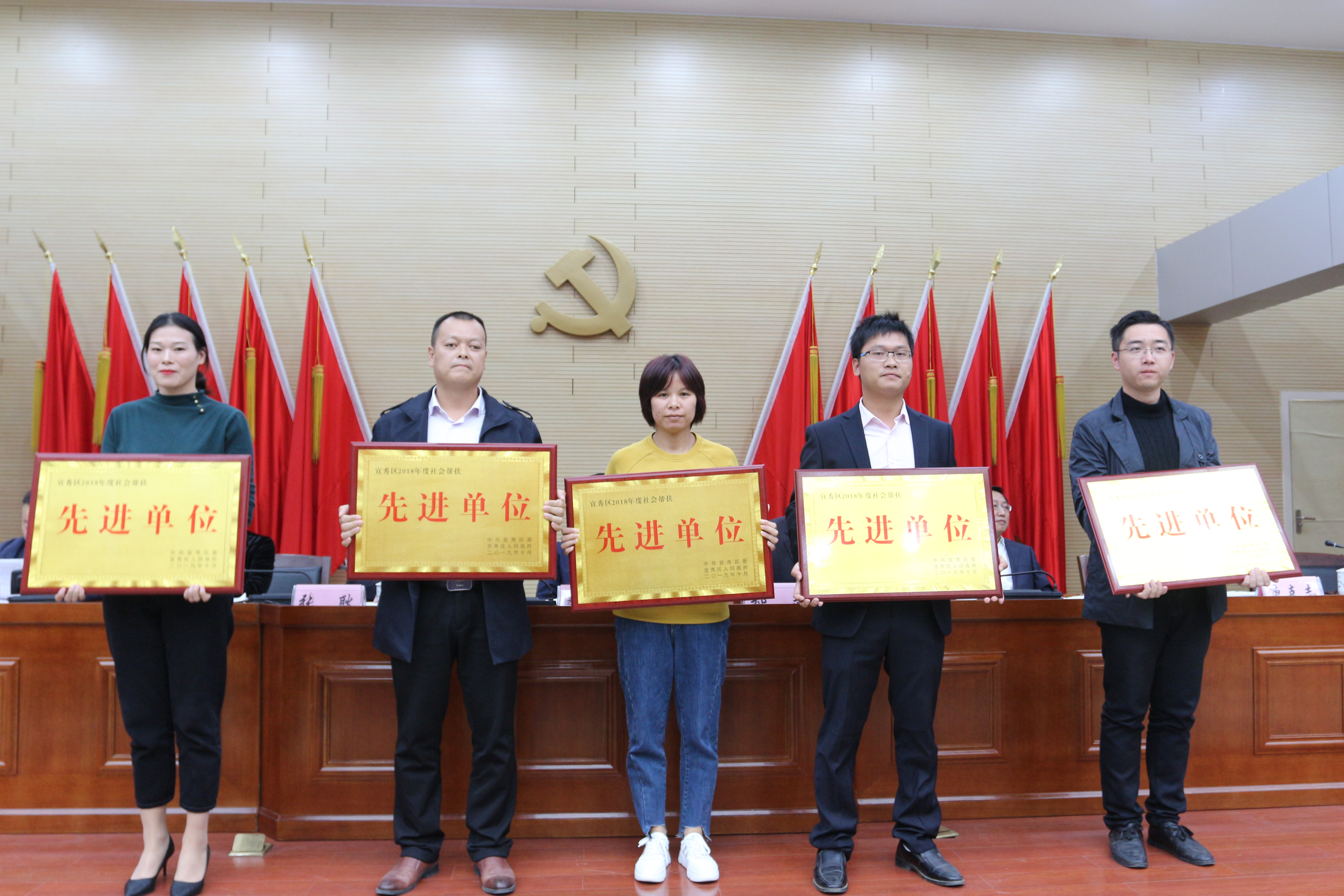 11月5日下午,全區脫貧攻堅工作表彰會暨“不忘初心 牢記使命”主題教育扶貧領域先進事跡報告會召開。區領導婁雪松、鄭志、張耿、林云飛、王瓊、唐克志、吳傳斗出席并為獲獎單位代表和獲獎人員頒獎,區直定點幫扶單位主要負責同志;駐村扶貧工作隊全體成員;各鄉鎮(街道)黨委或政府主要負責同志、扶貧分管負責同志、扶貧辦主任;所有獲獎單位代表及獲獎人員;區扶貧辦全體成員參加。