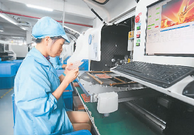 近日,江西省高安市康銘盛光電科技有限公司內,工人在生產車間檢查燈具產品質量,準備銷往國內外市場。