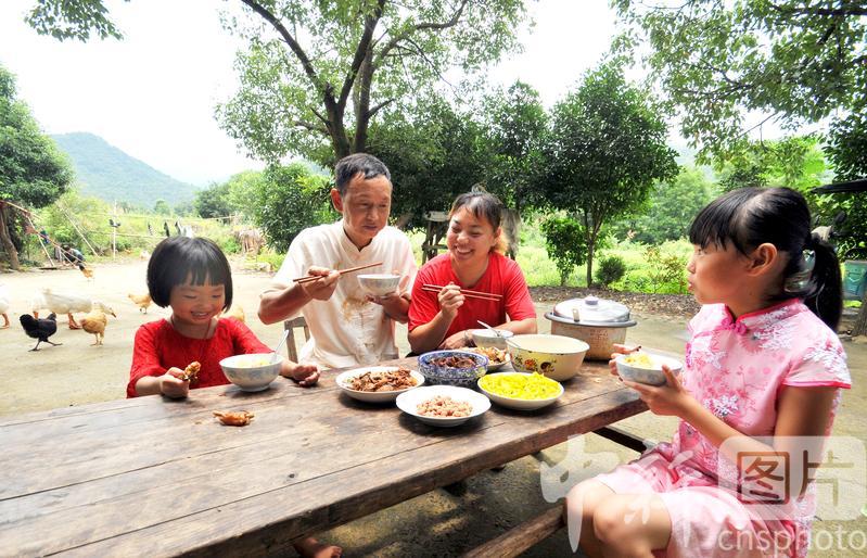 2020年8月11日,在安徽省安慶市宜秀區五橫鄉,李成林一家四口正圍著凉桌吃著香噴噴的飯菜。