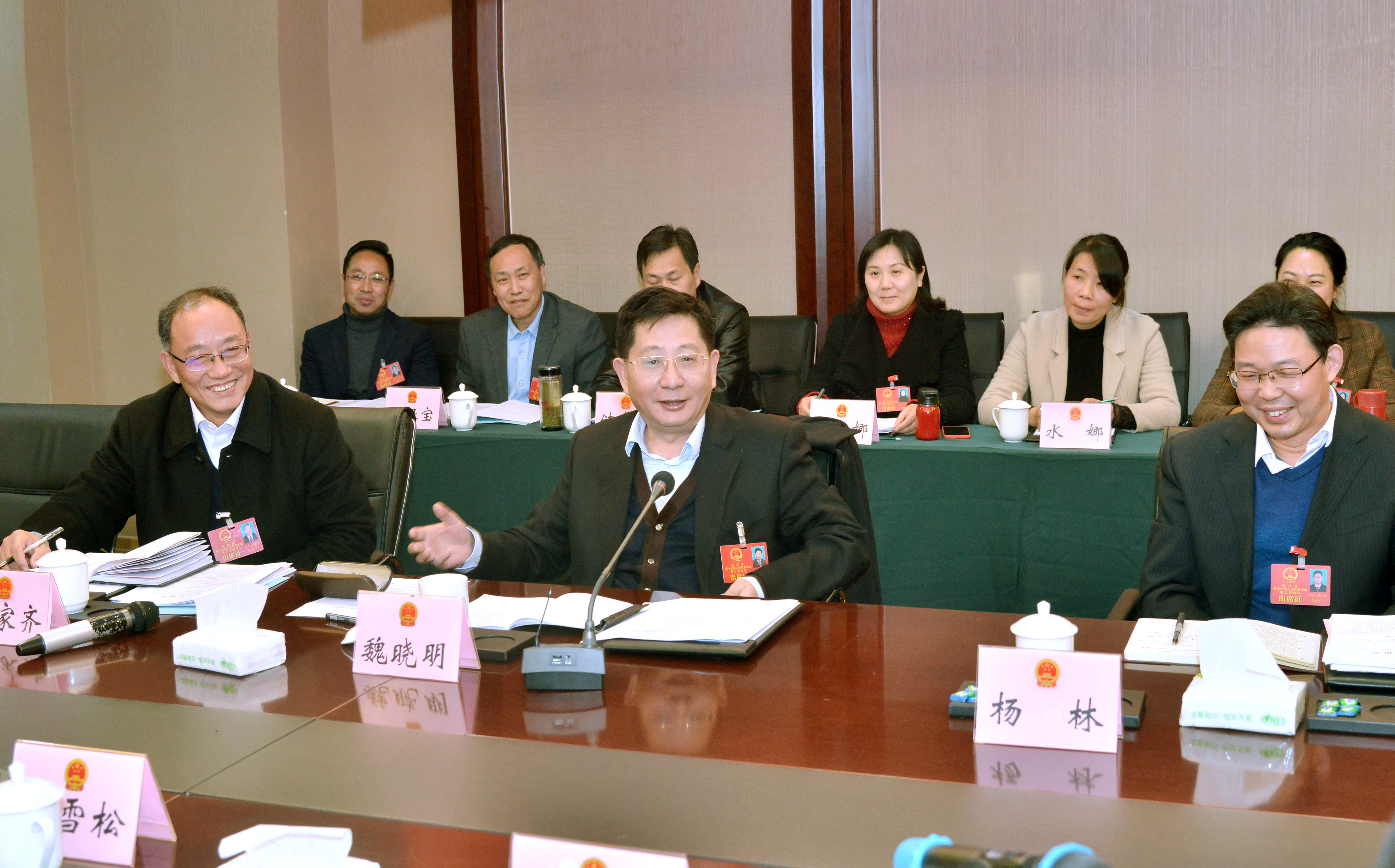 1月7日,市委書記、市人大常委會主任魏曉明來到市十七屆人大三次會議宜秀區代表團與代表們一起審議《政府工作報告》,聽取大家的意見和建議。市領導楊林、鄭家齊參加會議。