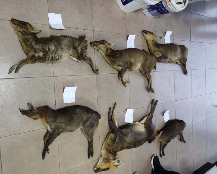 警情就是命令。宜秀森林公安民警迅速出動(dòng),趕往現(xiàn)場(chǎng),將犯罪嫌疑人崔某志、王某政、王某節(jié)三人當(dāng)場(chǎng)抓獲。經(jīng)初步鑒定,車(chē)內(nèi)6只野生動(dòng)物死體為省二級(jí)保護(hù)動(dòng)物黃麂。