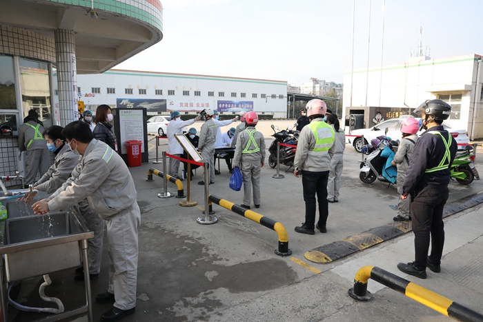 在加寶工業園,已經復工的每家企業都設置了臨時隔離室,并實行封閉管理,一門進出。在小龍人食品股份有限公司,據負責人介紹,這次疫情防控措施明確到設備、人員、車輛、車間、食堂、宿舍等各種管理細節,所有一線工人都要嚴格的測量、消毒,穿上專業工作服才能進入生產車間,非前線工人一率不準進入,一方面是為了保證工人自身的身體健康,另一方面也是保證生產出來的食品要絕對安全。