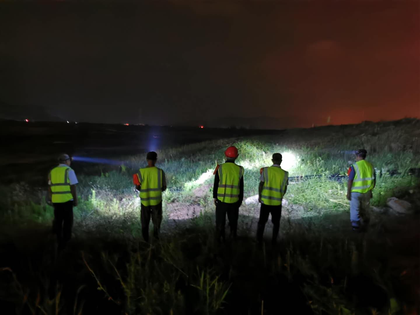 天漸漸黑了下來,白老和工友們還在繼續巡堤,黑夜中看不清他們的臉,只有熒光服和手電筒的光在草地上晃動著,但他們的背影是那么的溫暖而又堅定。