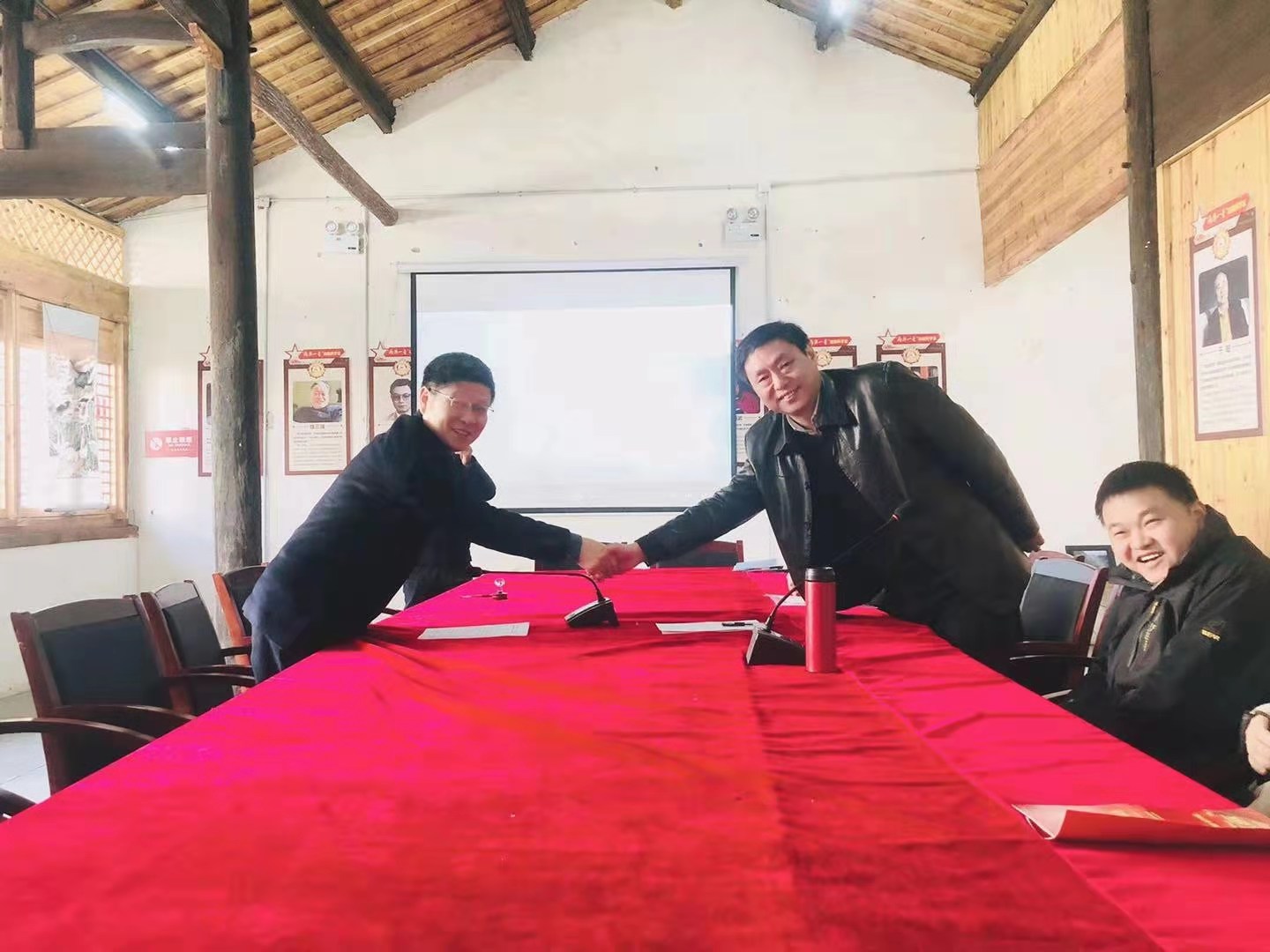 2020年12月4日上午在五橫鄉白林村的兩鄧故居。為共建 “鄧稼先故居”大學生社會實踐教育基地,安徽醫科大學的副院長程孝文與五橫鄉黨委書記陳杰南的手緊緊握在一起。