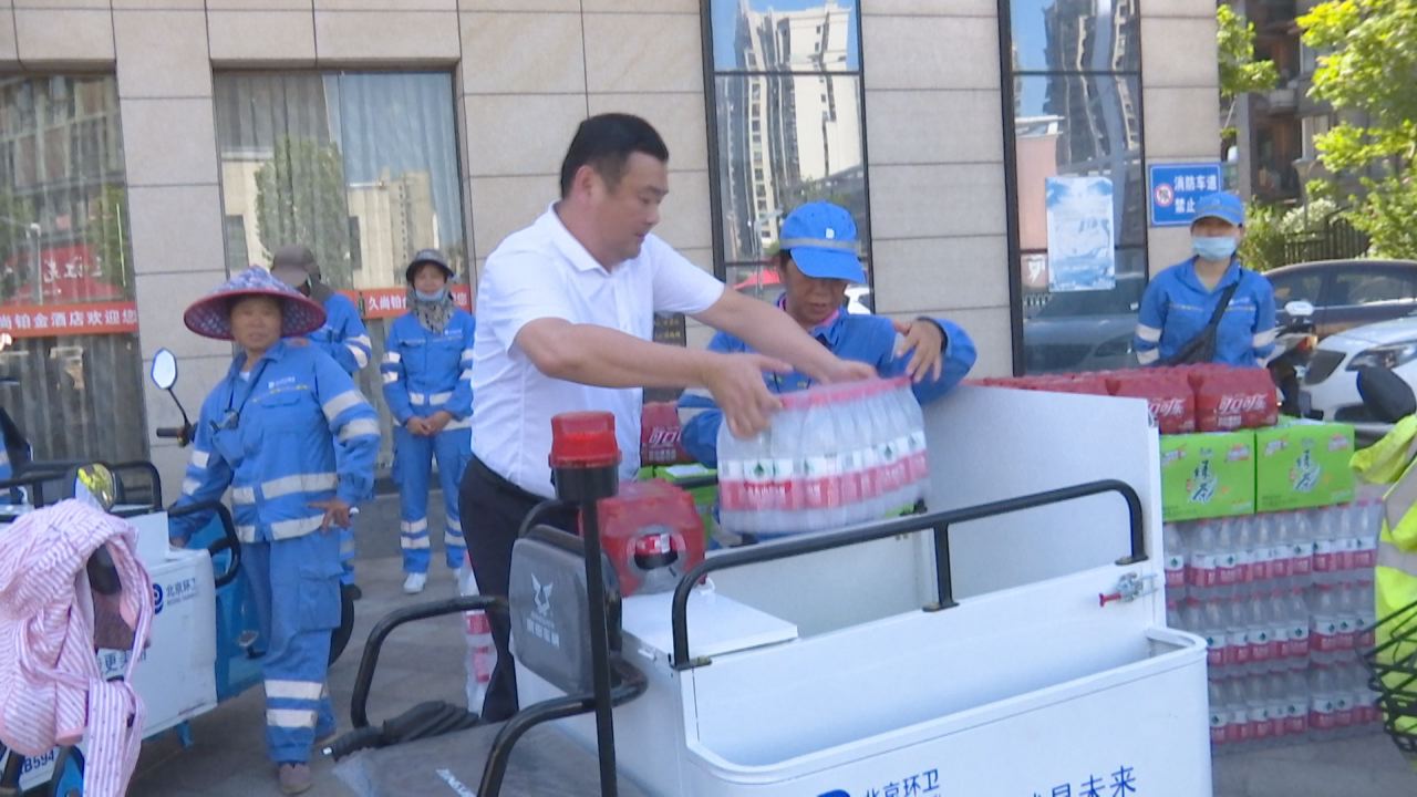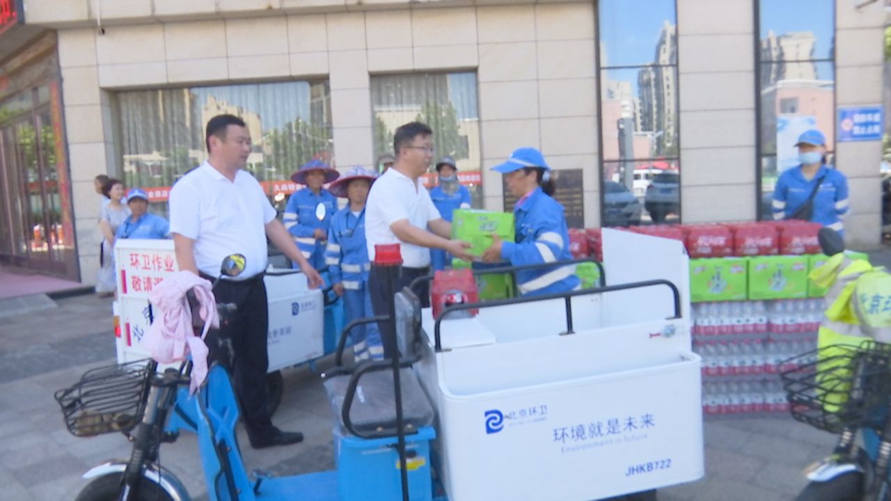 此次活動向環(huán)衛(wèi)工作者們送去了飲料,礦泉水等防暑物品,確保讓每一位環(huán)衛(wèi)工人感受到“清涼”、感受到關(guān)愛。