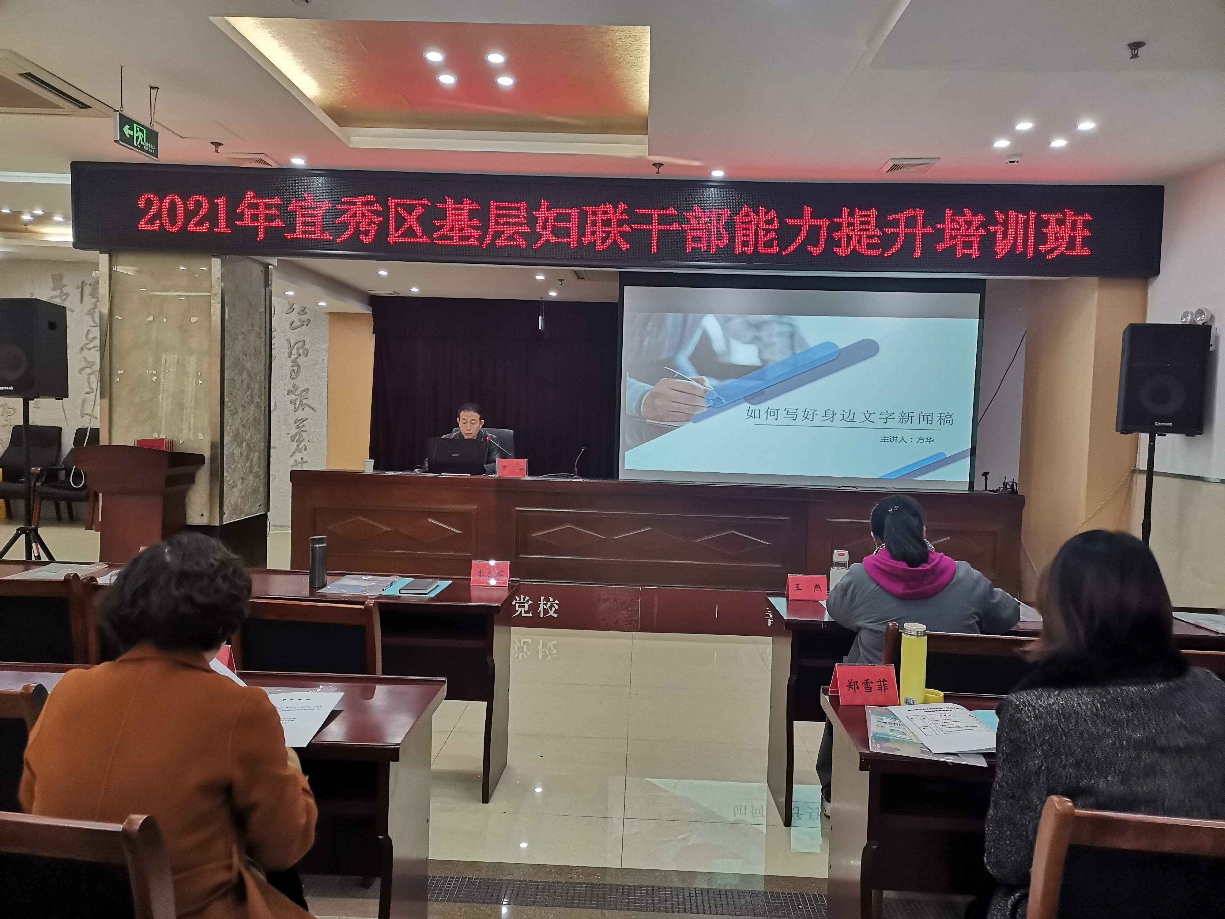 為全面提升婦聯組織成員履職能力和業務水平,11月30日,2021年宜秀區基層婦聯干部能力提升培訓班在區委黨校舉行。各鄉鎮街道婦聯主席、區直機關婦委會主任及部分非公企業與社會組織婦委會負責人近40人參加。