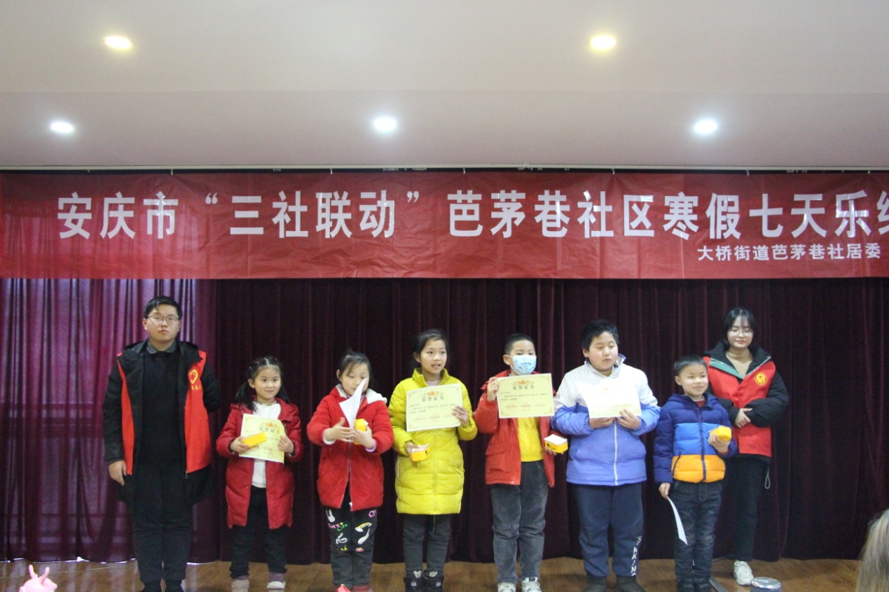 2月4下午,安慶市“三社聯(lián)動”芭茅巷社區(qū)寒假七天樂結(jié)業(yè)典禮在社區(qū)四樓會議室成功舉行,志愿者、學(xué)生及家長共60余人參加。