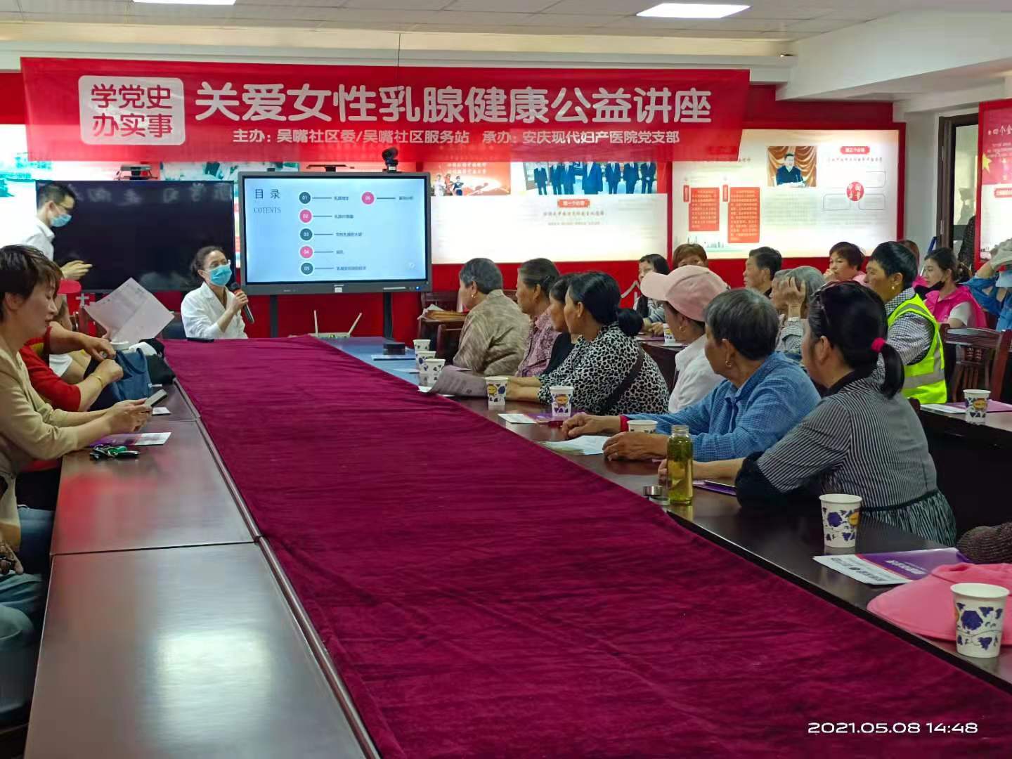 學史力行,吳嘴社區不斷推進“我為群眾辦實事”實踐活動,5月8日下午,吳嘴社區計生協、婦聯聯合安慶現代婦產醫院舉辦關愛女性乳腺健康公益講座,切實將實事好事辦到居民家門口。
