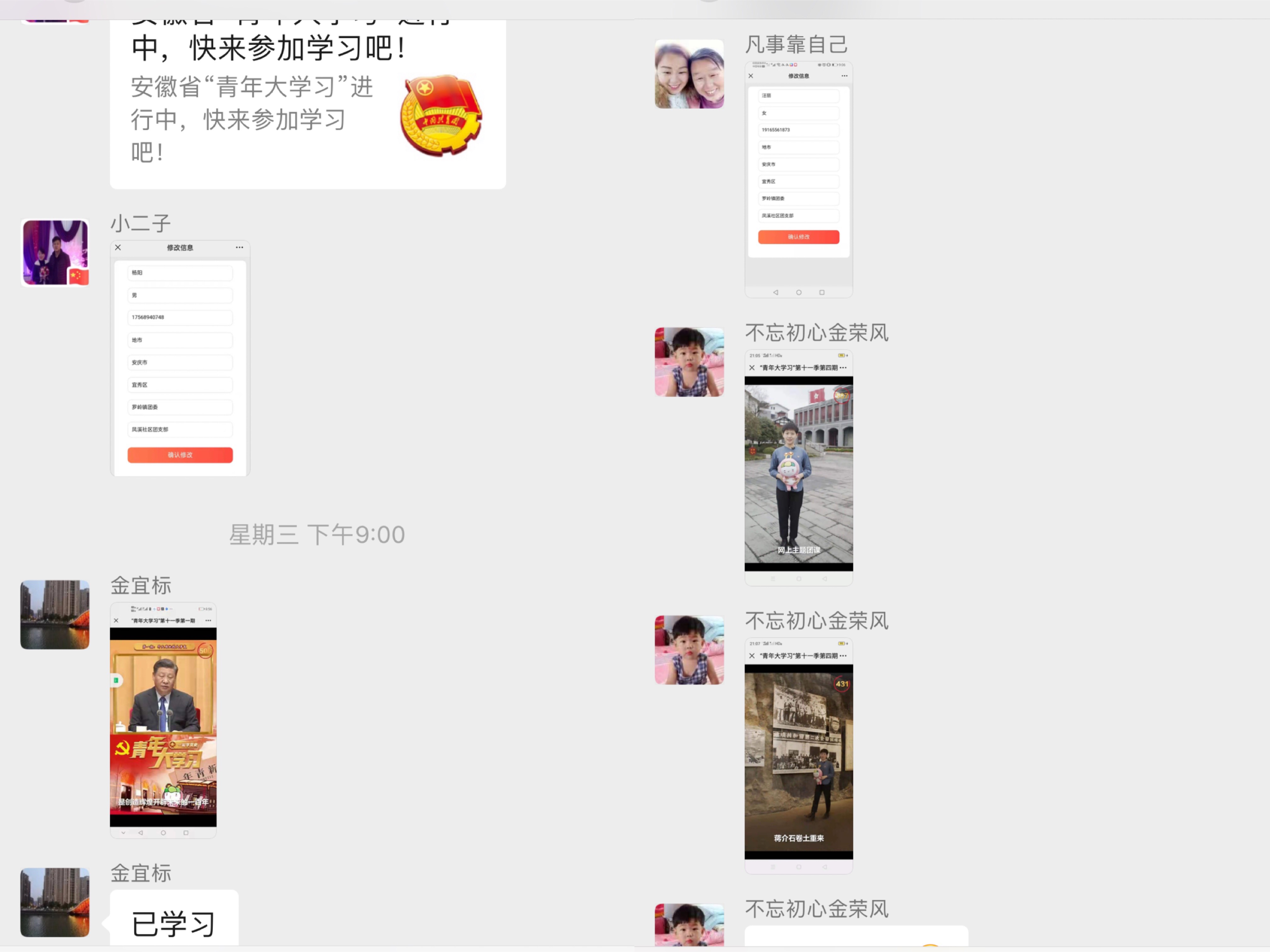 除了老弱病殘黨員,鳳溪社區(qū)青年團(tuán)員的組織生活也沒(méi)有落下。自開展黨史學(xué)習(xí)教育以來(lái),社區(qū)團(tuán)支部書記胡嫻每天都會(huì)將微信公眾號(hào)上的青年大學(xué)習(xí)中黨史學(xué)習(xí)內(nèi)容傳到團(tuán)員聯(lián)絡(luò)微信群中,督促大家按時(shí)完成學(xué)習(xí),讓廣大青年在學(xué)習(xí)工作之余緊跟社區(qū)黨支部學(xué)習(xí)步伐,厚植愛(ài)國(guó)、愛(ài)黨情懷,讓紅色基因、革命薪火代代相傳。