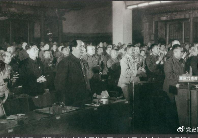 1949年9月30日,毛澤東當選中華人民共和國中央人民政府主席,全場起立,鼓掌祝賀。
