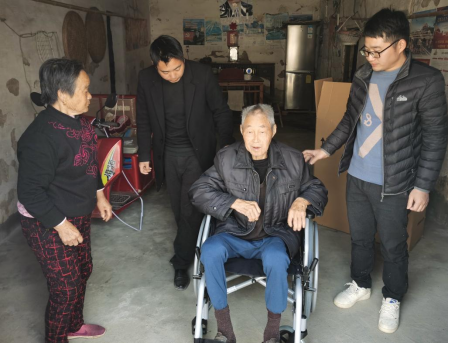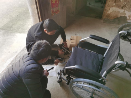 小龍山社區通過走訪,了解到退役軍人潘某寶由于年老,日常行動不便,需要跟換輪椅。社區殘聯部門立即聯系鎮民政部門,落實輪椅一事。輪椅申領成功后,社區殘聯工作人員為潘老更換新的輪椅,耐心將輪椅安裝調試好,擦拭干凈,并協助他坐上新輪椅。