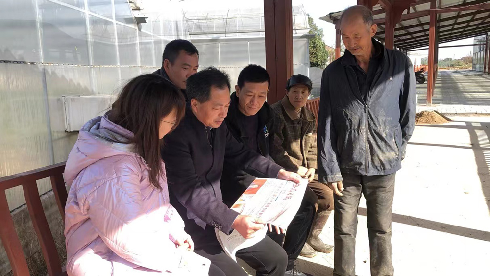 11月23日上午,在宜秀區五橫鄉白林村龍云生態田園基地,鎮村干部來到這里,向種植大戶、基地農戶宣講黨的十九屆六中全會精神。基地負責人吳躍忠介紹說,他這些年在村里承包了1600畝田,發展經果特色種植,每畝的效益可達萬元左右,每年解決當地村民務工就有70人。十九屆六中全會精神的宣講,讓他對未來發展信心十足。