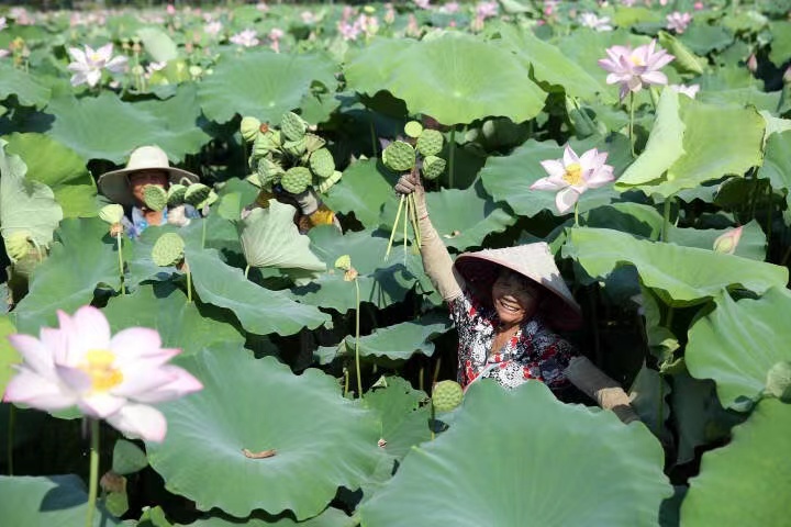 “我是在朋友圈上刷到的,平時工作很忙,周末就帶著孩子來鄉村感受下田園風光。”家在安慶市城區的李女士說,在這里不僅可以拍照打卡,還可以體驗蓮子采摘、感受農耕文化,最重要的是可以獲得身心的放松。