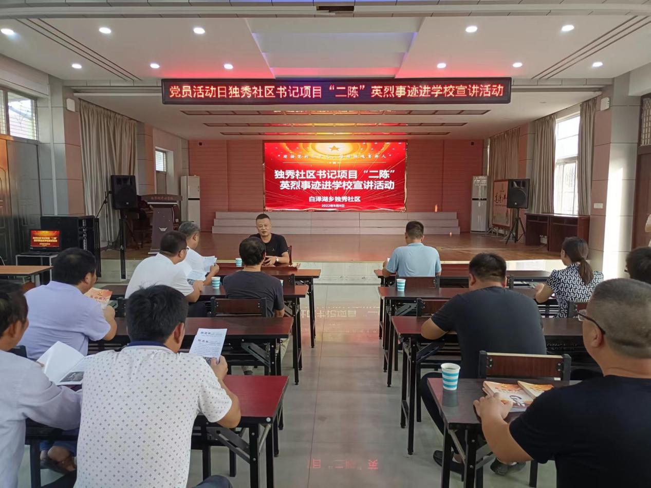 秋菊溢彩,桃李芬芳,迎著秋風,伴著溫情。為引導廣大教師堅定理想信念,傳承紅色基因,繼承革命的榮耀傳統(tǒng),弘揚愛國主義精神,9月9日,白澤湖鄉(xiāng)獨秀社區(qū)結(jié)合黨員活動日開展“書記項目進學校—陳喬年、陳延年“二陳”革命英烈事跡宣講”主題活動。