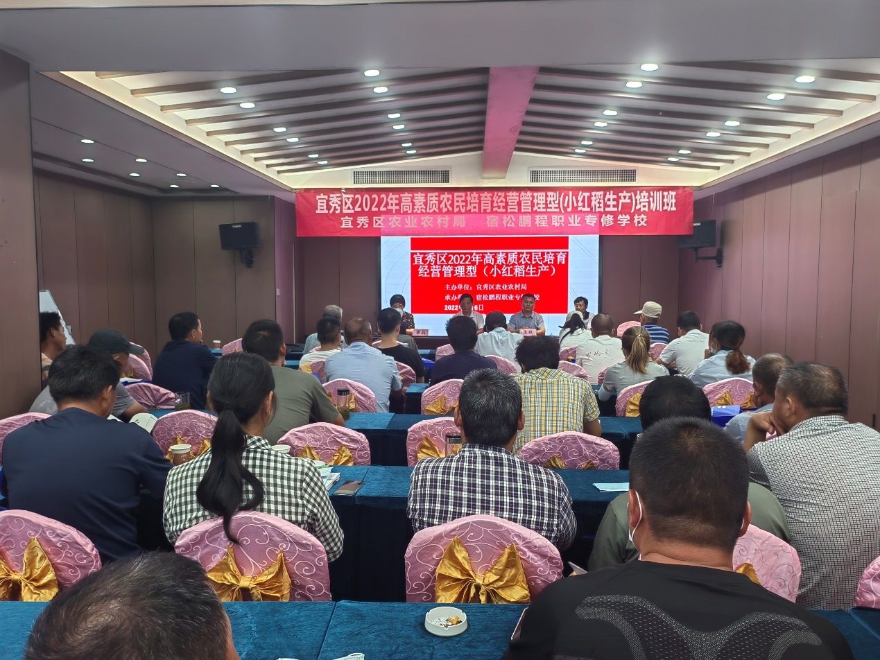 8月6日,由宜秀區農業農村局主辦,宿松鵬程職業專修學校承辦的高素質農民培育經營管理型(小紅稻生產)培訓班在宜秀區成功舉辦,來自羅嶺鎮、楊橋鎮、五橫鄉等鄉鎮50名種糧大戶參加學習。