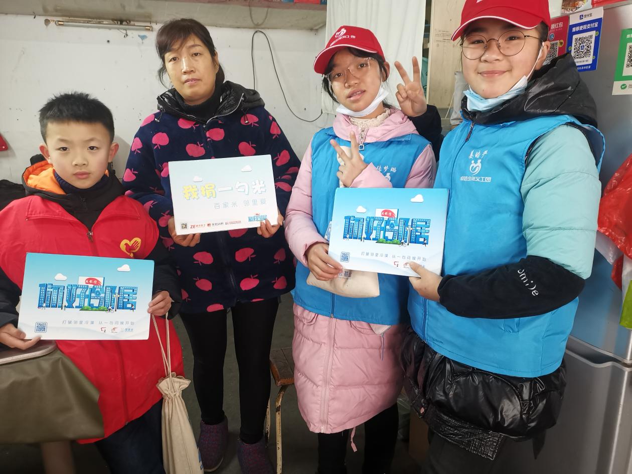 2022年1月8日上午,十幾名身穿志愿者馬甲的小朋友踏著冬日溫暖的陽光,走進(jìn)了芭茅巷社區(qū),他們拿著印有“你好,鄰居”、“我捐一勺米”的小牌子和米袋,敲開社區(qū)居民的家門,送上早晨的第一聲“你好”。這是芭茅巷社區(qū)居家養(yǎng)老服務(wù)站和卓爾社工聯(lián)合舉辦的芭茅巷社區(qū)“一勺米”募集挑戰(zhàn)公益活動(dòng),截止今日該活動(dòng)已舉辦三屆,今年有14名小朋友報(bào)名參加,其中最大的六年級,最小的4歲。參加活動(dòng)的小朋友們以社區(qū)志愿者的身份,在一名成人的陪同下,向社區(qū)居民募集一勺米,并邀請居民們在臘八節(jié)當(dāng)天來社區(qū)品嘗臘八粥,活動(dòng)全程由小朋友們自己完成敲門、募米、邀請品粥的環(huán)節(jié)。