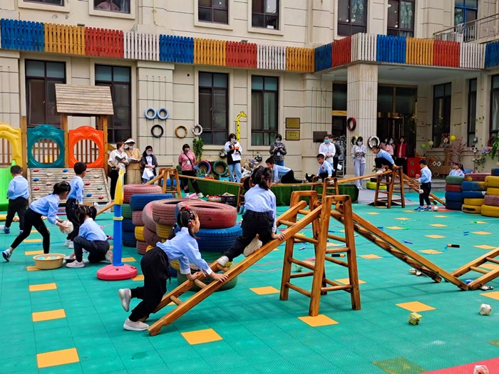 小班組自主游戲《勇闖冒險(xiǎn)島》中,在老師的引導(dǎo)下,小萌新們毫不示弱,他們?cè)诨顒?dòng)中展現(xiàn)出的認(rèn)真、投入、專(zhuān)注、勇敢、堅(jiān)持、探究的精神同樣贏得了在場(chǎng)觀摩老師們的肯定,整個(gè)操場(chǎng)變成了孩子們快樂(lè)的游戲場(chǎng)。