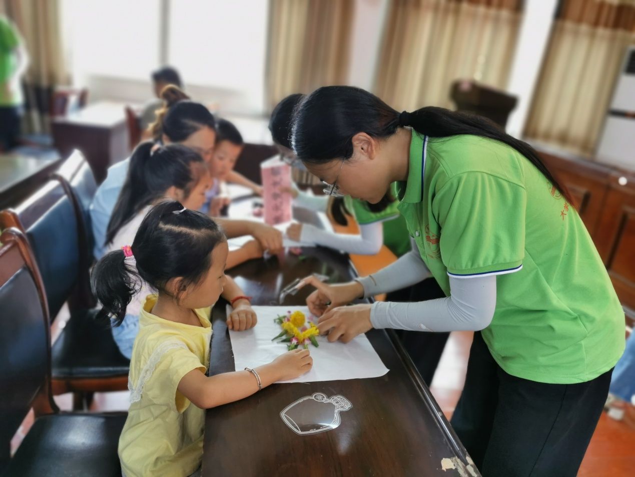 為了提高孩子的動手動腦能力,豐富孩子的假期生活,促進孩子的全面發展。鄉村振興實踐團志愿者們舉辦了以樹葉、花朵為原材料的手工制作活動。