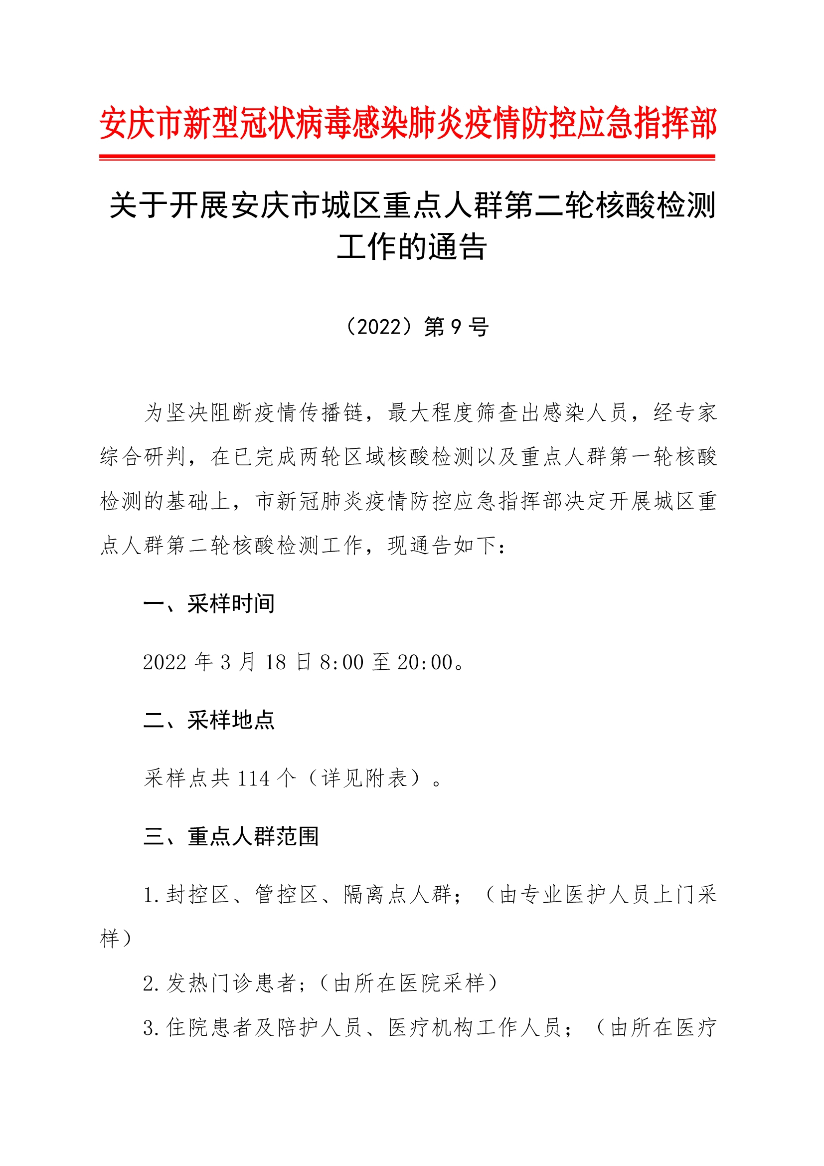 關于開展安慶市城區重點人群第二輪核酸檢測工作的通告