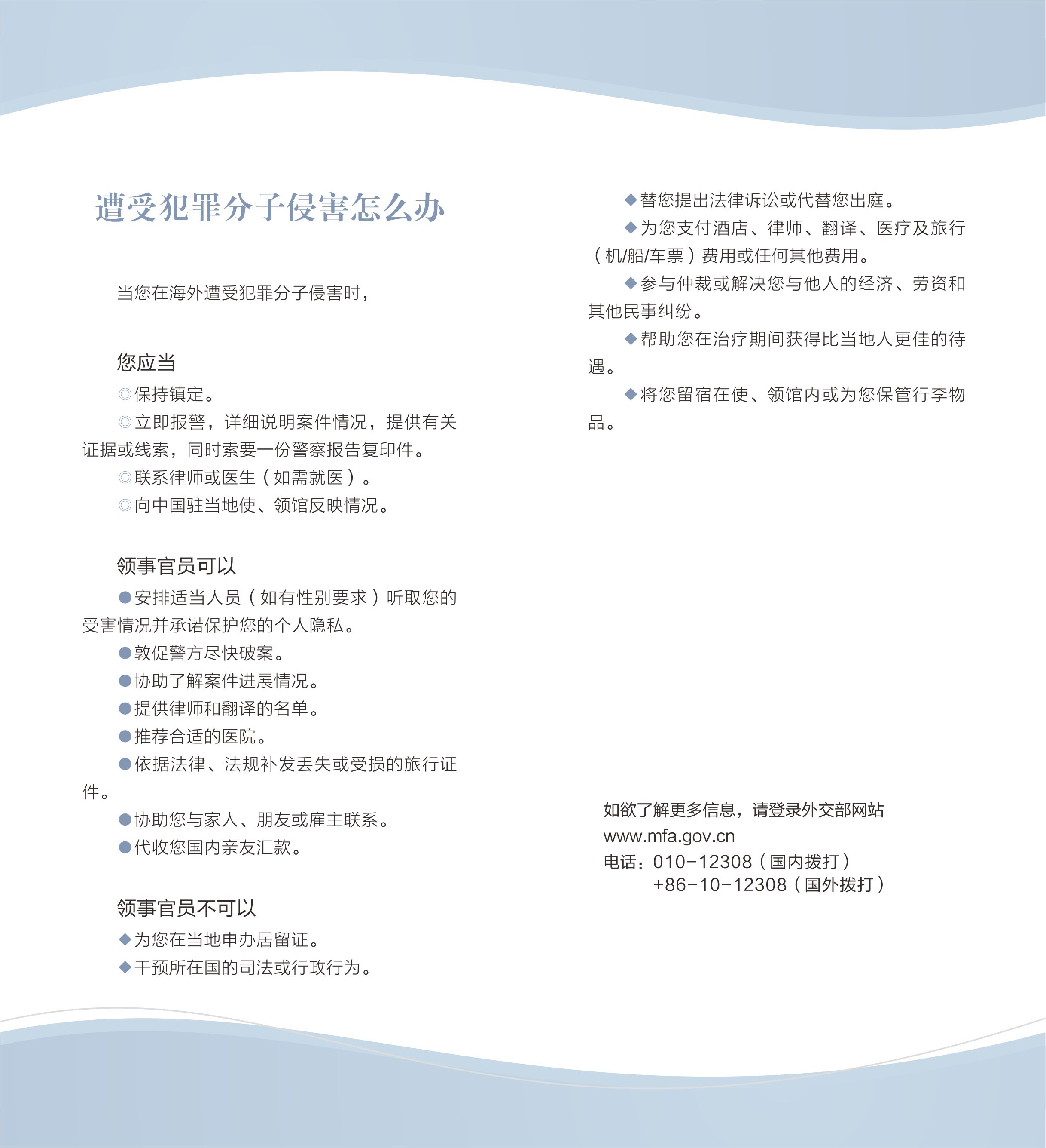 海外領事保護宣傳“五進”活動系列宣傳冊(五~十)