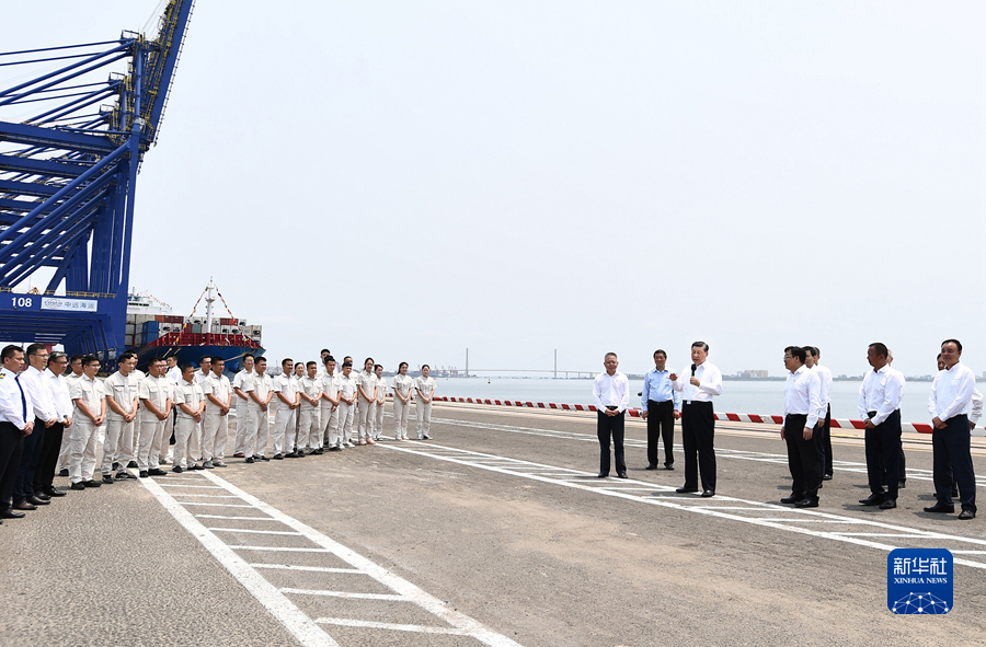 隨后,習(xí)近平來到洋浦國際集裝箱碼頭小鏟灘港區(qū),了解港口建設(shè)發(fā)展情況,同現(xiàn)場作業(yè)人員、掛職干部代表等親切交流。習(xí)近平強調(diào),振興港口、發(fā)展運輸業(yè),要把握好定位,增強適配性,堅持綠色發(fā)展、生態(tài)優(yōu)先,推動港口發(fā)展同洋浦經(jīng)濟開發(fā)區(qū)、自由貿(mào)易港建設(shè)相得益彰、互促共進,更好服務(wù)建設(shè)西部陸海新通道、共建“一帶一路”。他指出,黨中央選派干部來自由貿(mào)易港掛職,既體現(xiàn)了黨中央對自由貿(mào)易港建設(shè)的關(guān)心和支持,也是對干部的培養(yǎng)鍛煉,要發(fā)揮掛職干部的積極作用,讓他們在基層一線增長才干。