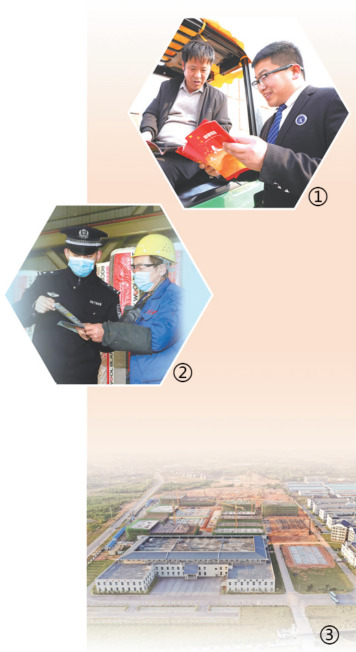 圖①:河北省邢臺市平鄉縣司法局組織志愿者為企業職工講解法律知識。