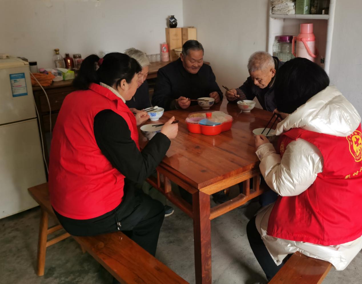 經過半個小時的努力,志愿者們將熱氣騰騰的湯圓盛到桌上,老人們吃著湯圓,一股暖意涌上心頭。一顆顆湯圓都充滿了濃濃的愛意,老人們吃在嘴里,甜在心里,臉上洋溢著幸福的笑容。“真是謝謝你們了,好久沒有這么多人陪我一起吃飯了。”五保老人汪海山感動得說。