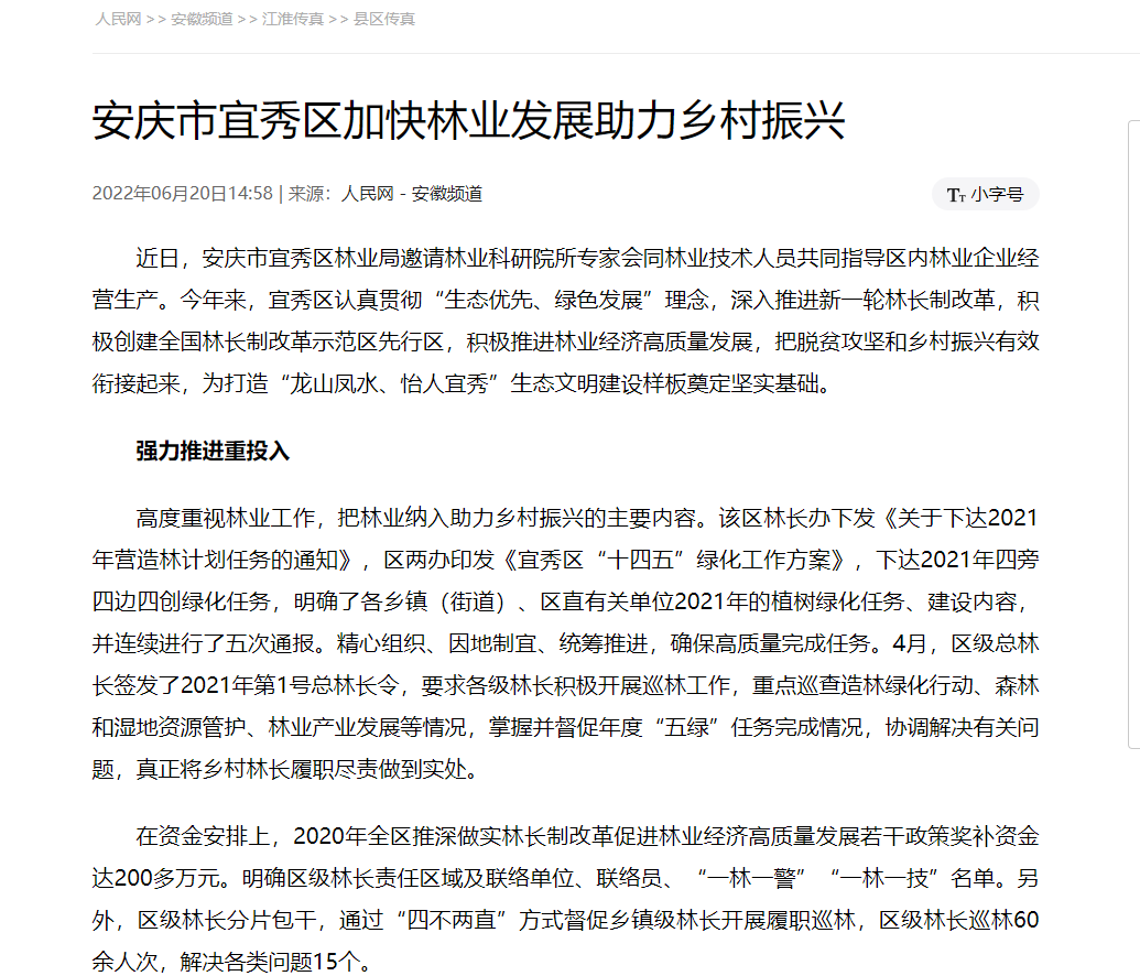 【人民網】安慶市宜秀區加快林業發展助力鄉村振興