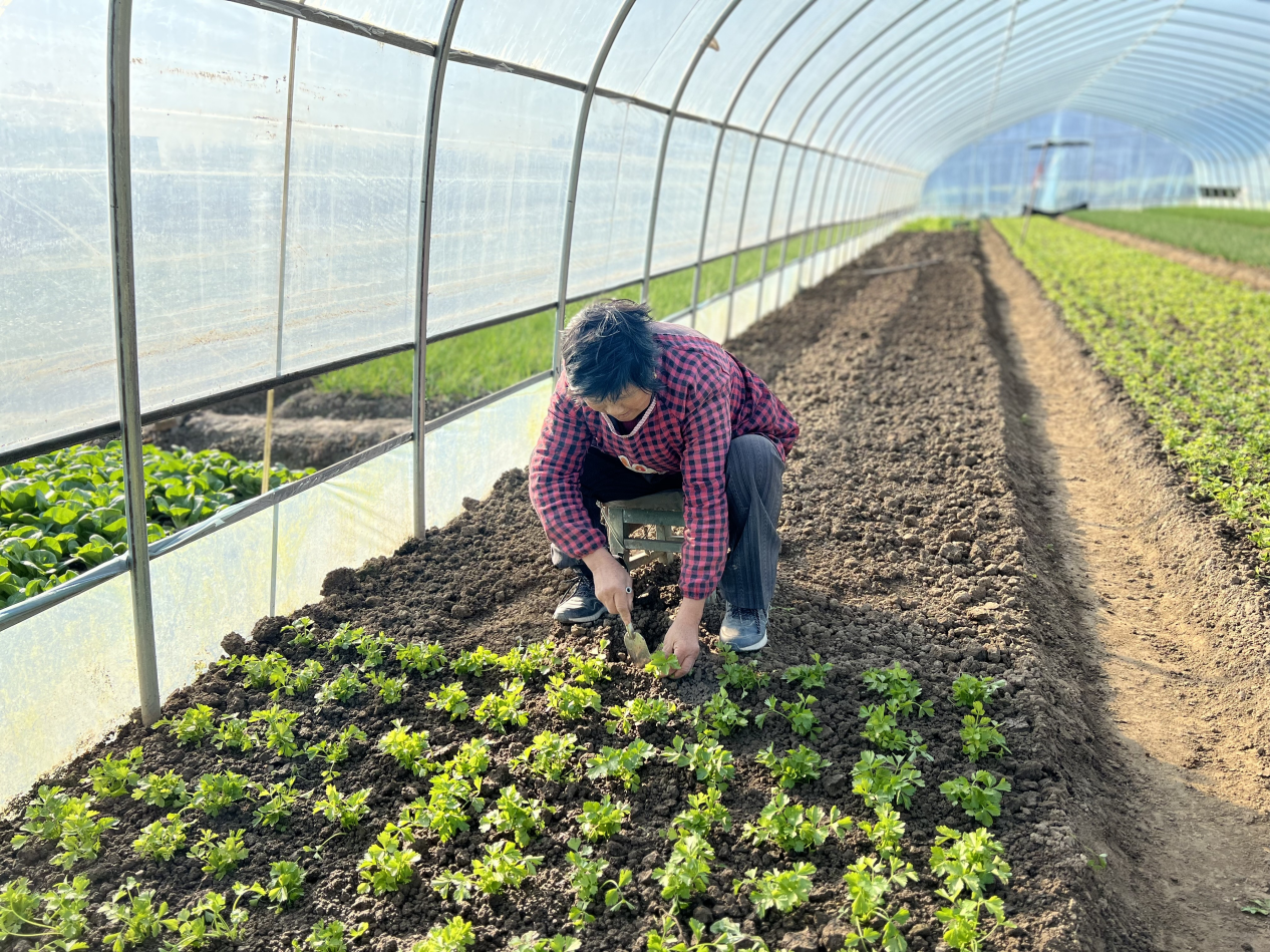 棚外寒風(fēng)刺骨,棚內(nèi)春意盎然。走進(jìn)大棚,清香的泥土氣息撲面而來,大片的綠葉生機(jī)勃勃,在陽光下亦是閃閃發(fā)光,惹人喜愛。2022年,為進(jìn)一步轉(zhuǎn)變農(nóng)業(yè)生產(chǎn)方式,調(diào)整農(nóng)業(yè)種植結(jié)構(gòu),提高土地的產(chǎn)出效益,帶動更多農(nóng)民增收致富,白澤社區(qū)“黨支部+合作社+土地流轉(zhuǎn)”模式,共流轉(zhuǎn)土地15畝,建造8個蔬菜大棚,承包給優(yōu)質(zhì)農(nóng)戶,種植應(yīng)季蔬菜,用科技化、精準(zhǔn)化的田園管理模式,進(jìn)一步提高蔬菜產(chǎn)量,帶動周邊農(nóng)戶致富增收。