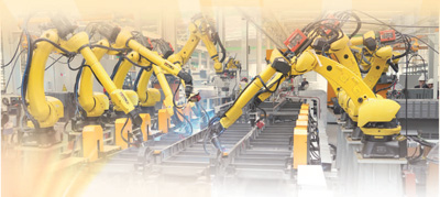 中集車輛旗下江門LTP生產中心里,機器人正在自動焊接。